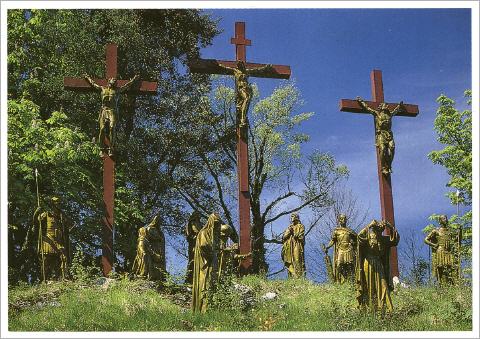 Das Zweite zeigt die Kreuzigungsgruppe am Kalfarienberg in Lourdes -