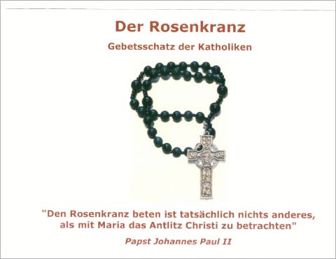 Mehr über den freudenreichen -, den lichtreichen -, den schmerzhaften - und den glorreichen Rosenkranz können Sie unten in zwei Versionen holen.
